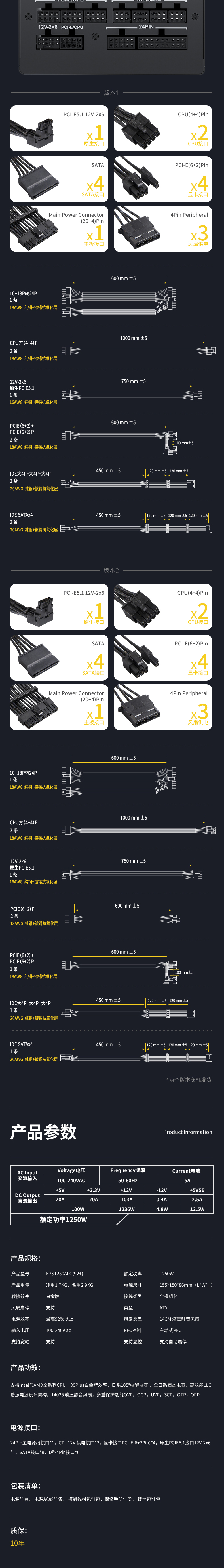 » 白金牌A+1250W(黑色款)