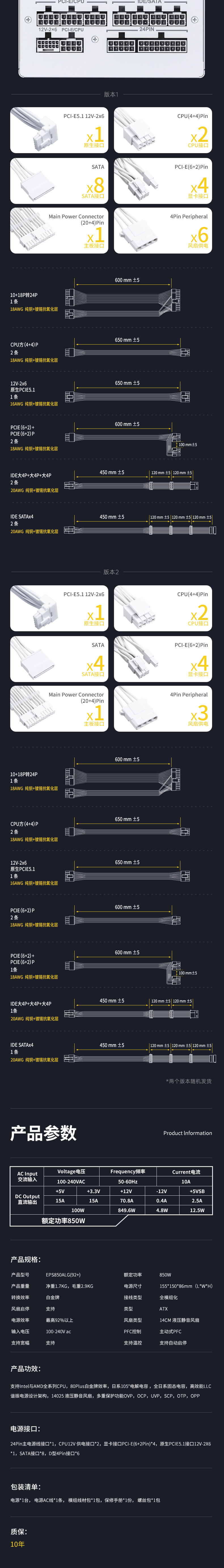 » 白金牌A+850W(全白版)