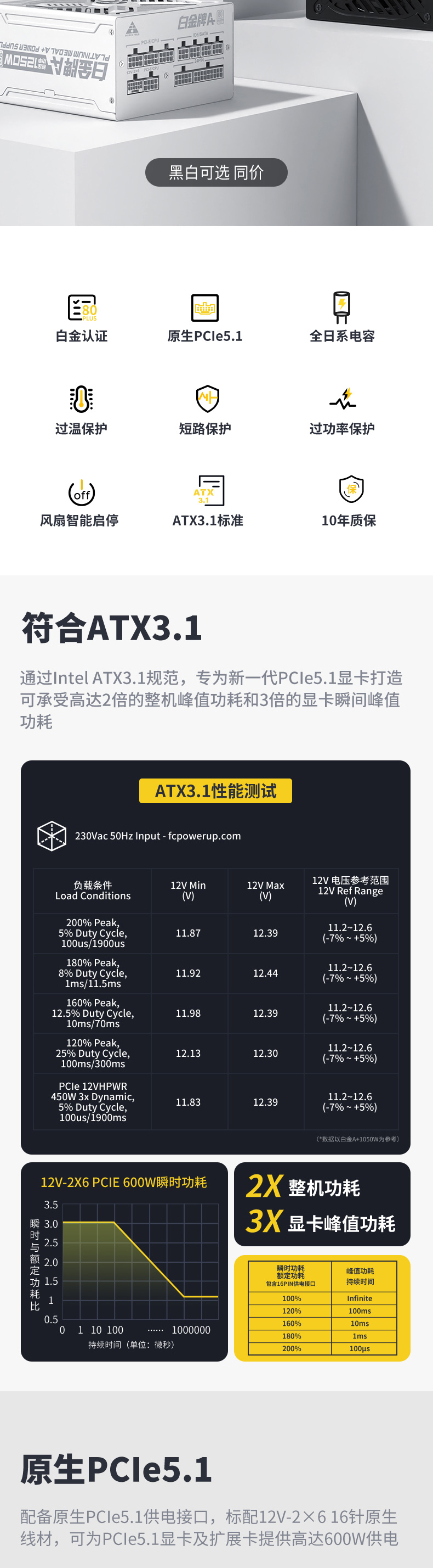 » 白金牌A+1250W(全白版)