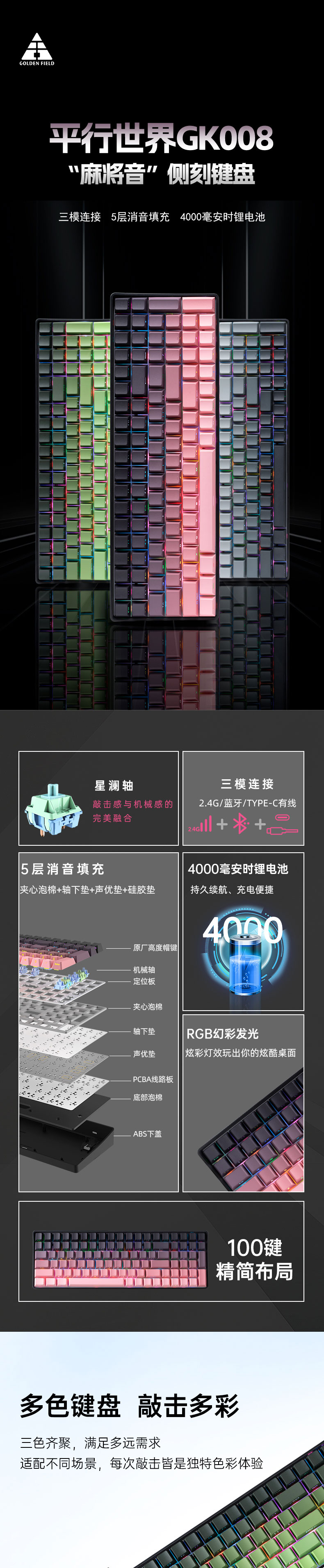 » 平行世界GK008键盘(黑莓粉)