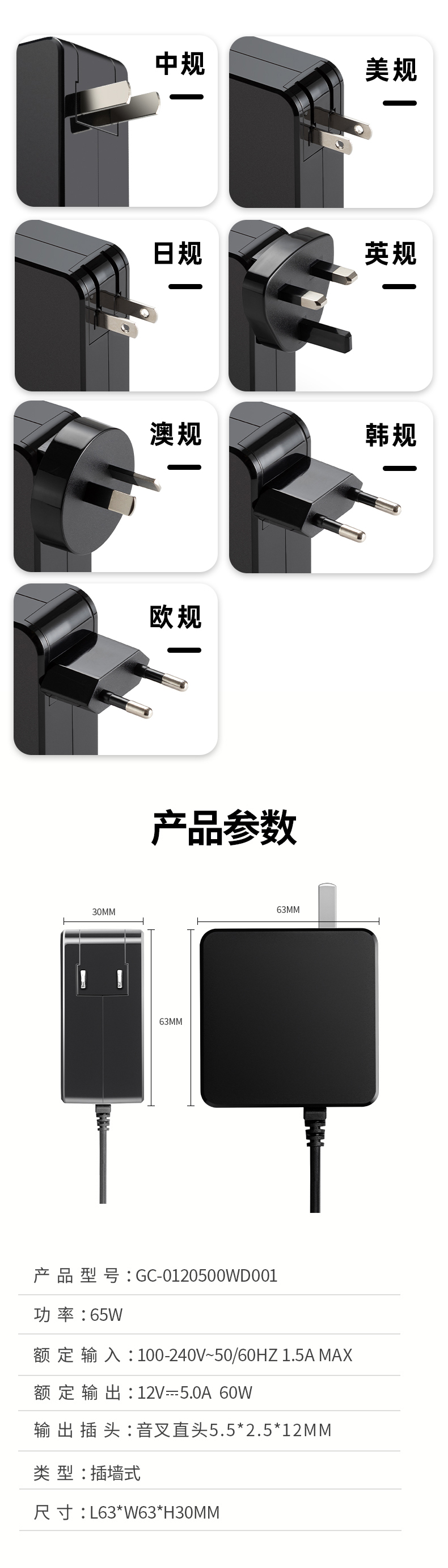 插墙式音叉直头电源适配器系列